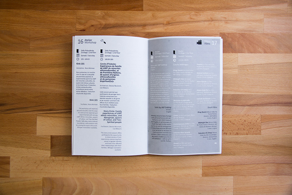 LGBTQ ethnic minorities.The icons on the cover is strategically designed to organize and categorize the events and