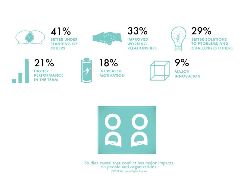 figures. The middle figure represents the mediator that divides the two parties. The chosen colour is to give a