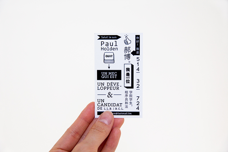 Paul is a developper and a law student who needed business cards to promote his side job in developing apps. As he was seeking