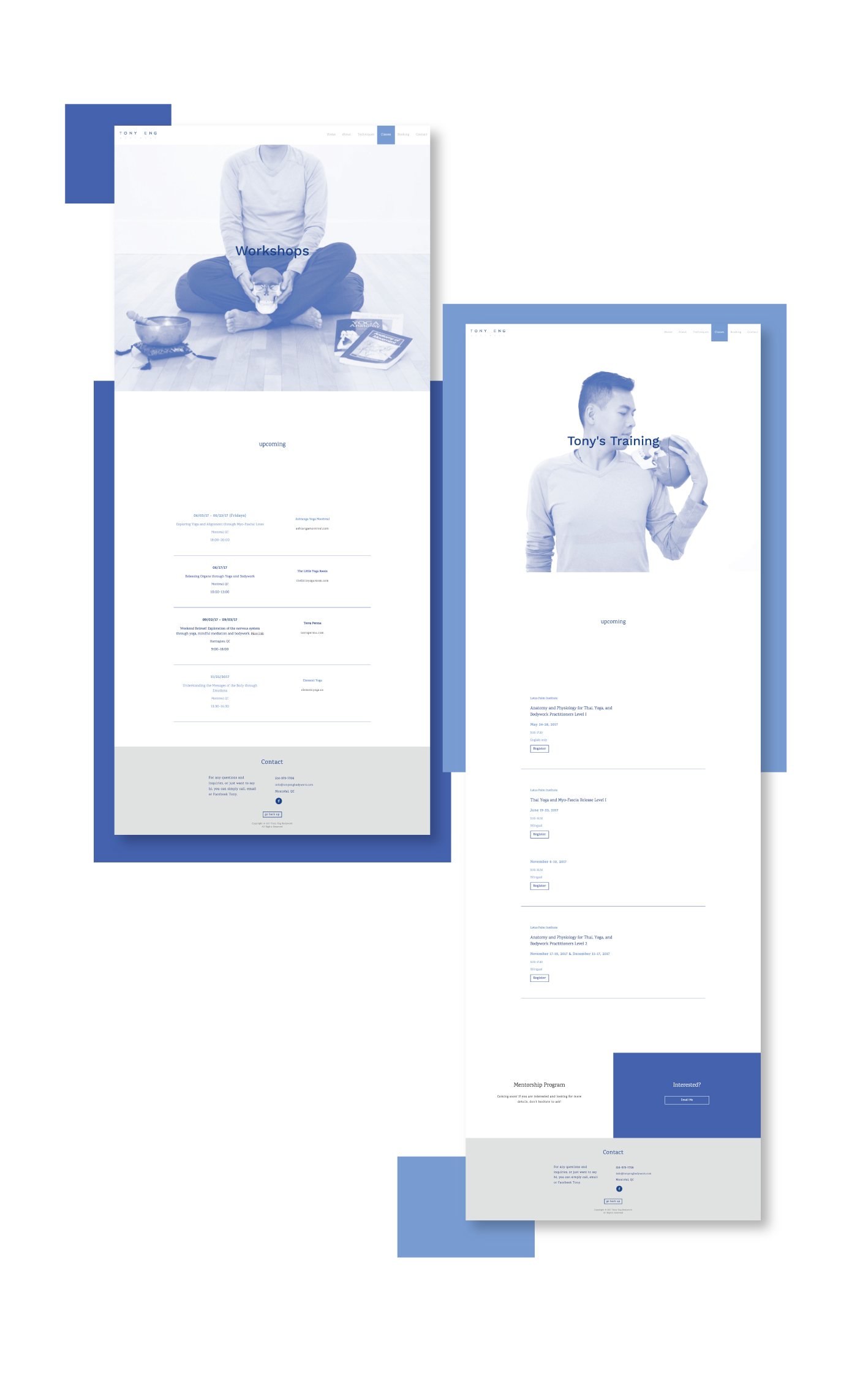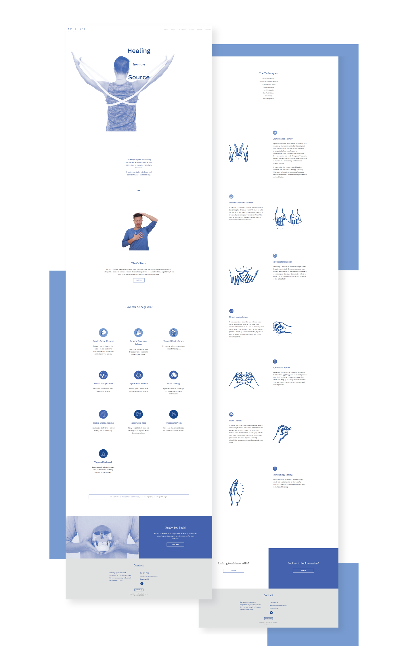 The aim was to create an easy to use website for clients to access up coming classes and workshops, bookings and learn about Tony's work. Aesthetically, we went for a minimal, clean look with a touch of calming shades of blue to keep it friendly and approachable.